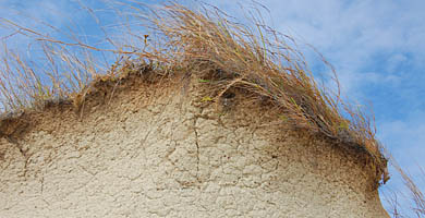 Badlands are heavily eroded areas where organic top soil has been washed away. They are nearly completely barren and are a striking feature of volcanic terrane landscape. Views maps: