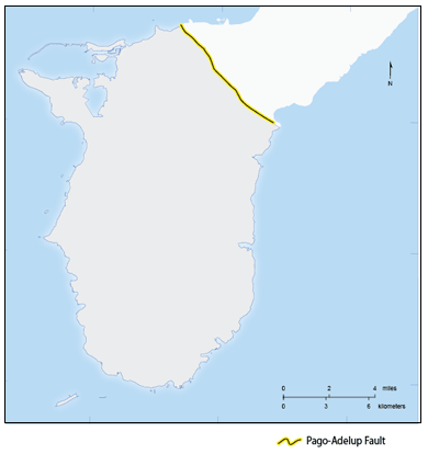 Southern Guam geospatial information serverPago-Adelup Fault![]() About this map:This map shows the Pago-Adelup fault, a major structural feature that separates the limestone plateau southern Guam from the mountainous volcanic terrain of southern Guam. The geospatial data were extracted from the detailed geologic map of Guam, produced by Siegrist, H.G. and Reagan, M. (2008) as a reinterpretation and revision of the Geologic Map of Guam by Tracey et al. (1964). |