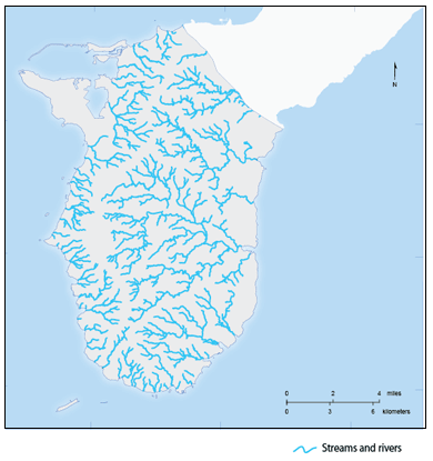 Southern Guam geospatial information serverDrainage network (all mapped streams and rivers)![]() About this map:This map shows the extent of streams and rivers in southern Guam. Southern Guam is characterized by a well developed drainage network, in contrast with the highly porous, karstified land surface in the northern half of the island. The geospatial data were derived from the recently updated National Hydrography Database (NHD) by the United States Geological Survey (USGS) in collaboration with Bureau of Statistics and Plans (BSP) and the Water and Environmental Research Institute of the Western Pacific (WERI). The dataset was extracted from the NHD Flowline dataset and slightly modified. The original NHD data can also be viewed and downloaded using the NHD Viewer. |