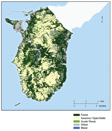 Southern Guam geospatial information serverLand cover (general map, 2011)![]() About this map:This is a general land cover map of southern Guam. It depicts the land surface in terms of five fundamental categories: forest, savanna / open fields, scrub / shrub, urban, and water. The geospatial data were derived from data are the land cover classification by NOAA Coastal Change Analysis Program (C-CAP) (2011). For more information see C-CAP website. |