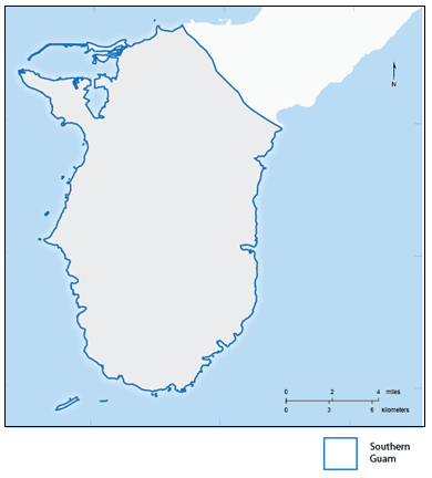 This map shows the shoreline of southern Guam, including islets on the surrounding reefs. The geospatial data were obtained by the Bureau of Statistics and Plans (BSP). The raw data download package for this map also includes a newer shoreline dataset created in 2014 as part of the National Hydrography Dataset (NHD) Update.